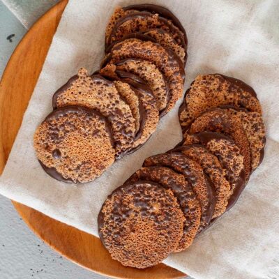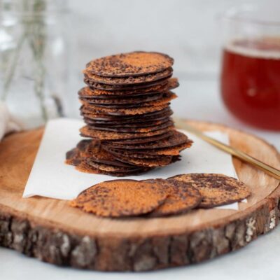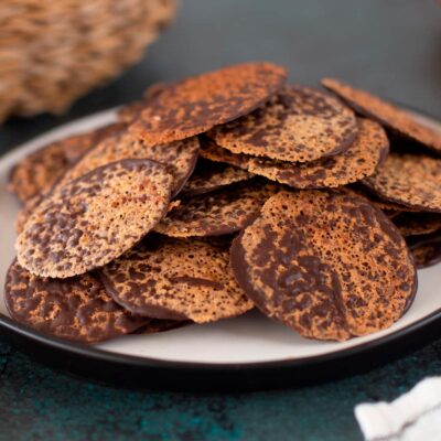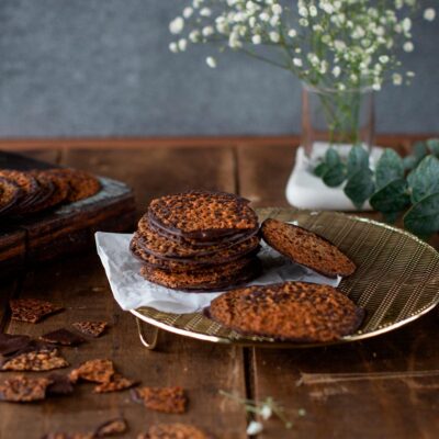 Te invitamos a probar nuestra nueva línea vegana. Finas y crocantes galletas de almendra con caramelo bañadas en chocolate bitter.