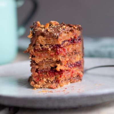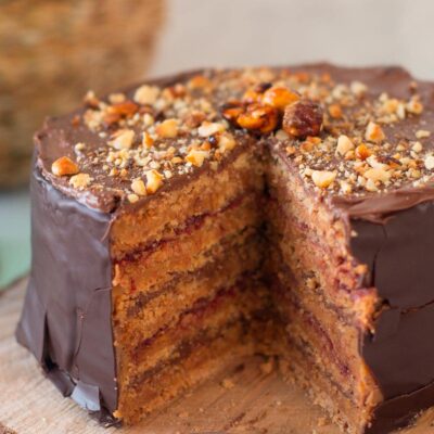Te invitamos a descubrir nuestra nueva torta de láminas de crocante de almendras, manjar blanco artesanal del sur de Chile, Nutella y frambuesa natural con top de praliné de avellanas europeas.